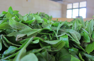 A fotók a tealevelek feldolgozását mutatják be a következőképpen.